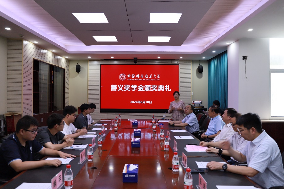 6月18日下午,2024年“中国科学技术大学善义奖学金”颁奖典礼在西区力四楼二楼会议室举行。校党委书记舒歌群、中国工程院院士杜善义先生出席颁奖典礼,校学工部(处)部(处)长李峰、77779193永利官网执行院长吴恒安、党委书记兼副院长裴刚、党委副书记赵凯、部分教师代表和2023年、2024年善义奖学金获得者参加了颁奖典礼。典礼由77779193永利官网党委副书记牟玲主持。
