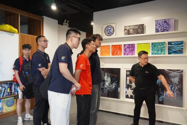 此外,为深入了解科技创新在产业发展中的应用与实践,同志们还参观调研了安徽威达环保科技有限公司和新知数字科技有限公司。在威达环保,同志们详细了解公司在环保技术研发、绿色生产及市场拓展等方面的进展。通过与企业领导及技术总工的面对面交流,大家不仅深入探讨了环保技术如何有效应对当前环境污染挑战,还就技术创新如何引领行业绿色可持续发展进行了热烈讨论。在新知数字,同志们了解到科学可视化的市场应用与前景,与艺术融合赋能商业品牌、走进课堂助力科普教育。