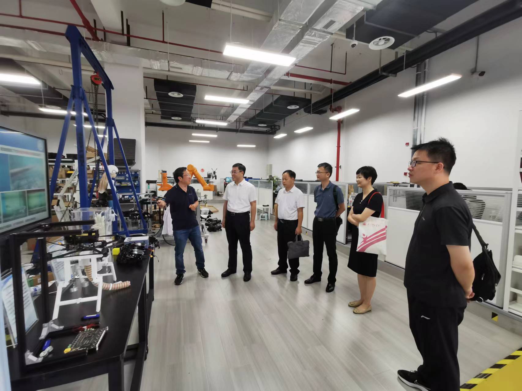 座谈会前,武汉体育学院一行还参观了机器人实验室,张世武介绍了智能机器人研究现状和发展趋势,展示了机器人研究成果。